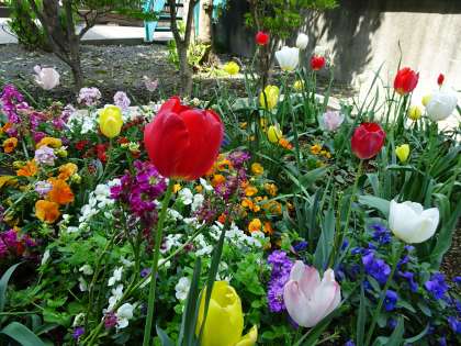チューリップがきれいに咲いています。 喜多見小学校には、たくさんの花や植物があります。