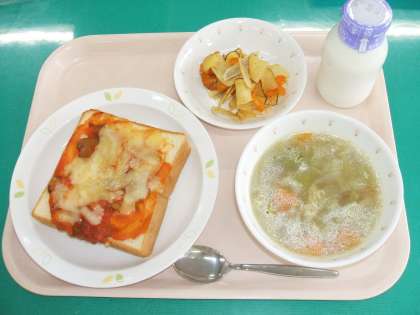 *ピザトースト *ABCスープ *野菜チップス *牛乳