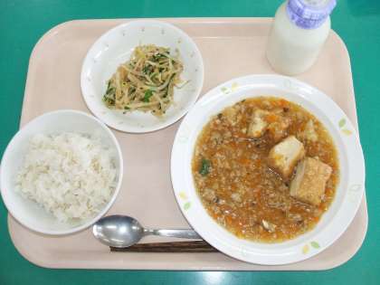 *麦ごはん *生あげのそぼろあんかけ *もやしのごま風味 *牛乳