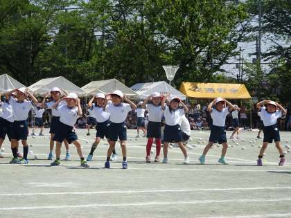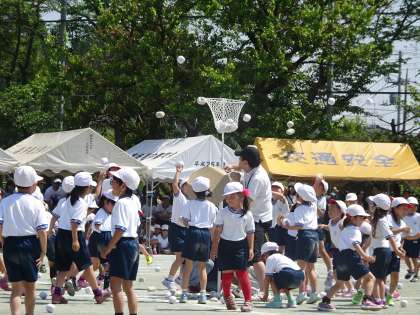 団体競技、毎年お馴染みの「チェッコリ玉入れ」です。 1年生のおしりをフリフリする踊りは、何度見てもかわいいです。