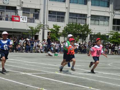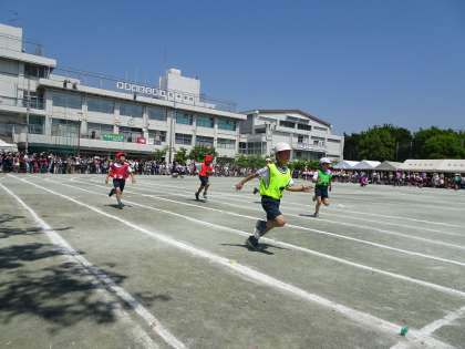 80メートル走です。 初めての80メートル走。上手にコーナーを回ってがんばっていました。