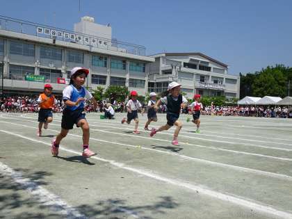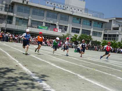 50メートル走 一生懸命腕を振って、ゴールを目指しました。