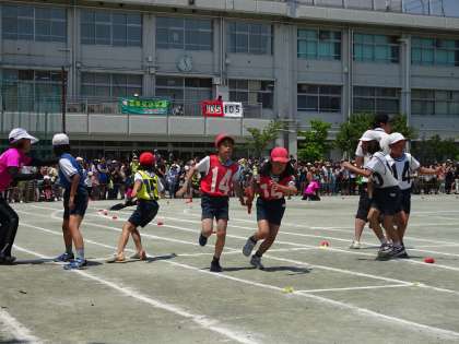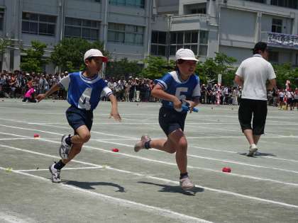 3、4年生の代表選手が走りました。たくさん練習したバトンパスの成果が出ていました。