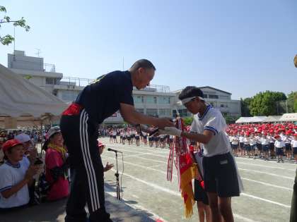 運動会(閉会式) 公開日 2017/05/24 更新日 2017/05/24 その他の教育活動 いよいよ運動会も閉会式です。 今年は4年ぶり赤組が勝ちました! 白組も最後まで諦めずによく頑張りました。 喜多見小学校のみなさん、最後までよくがんばりました。
