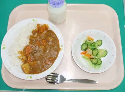 *カレーライス *福神漬 *野菜の甘酢かけ *牛乳
