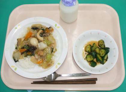 *中華丼 *ピリ辛きゅうり *牛乳
