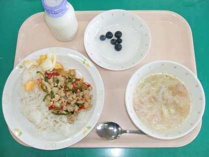 *ガパオライス *ABCスープ *くだもの(ブルーベリー) *牛乳