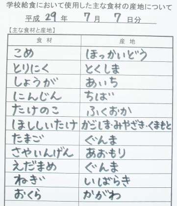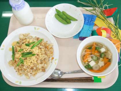 *そぼろごはん *えだまめ *七夕汁 *みかんシャーベット *牛乳