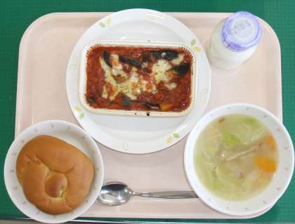*あしたばパン *なすのグラタン *ABCスープ *牛乳