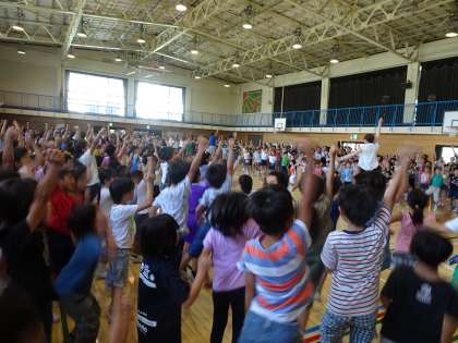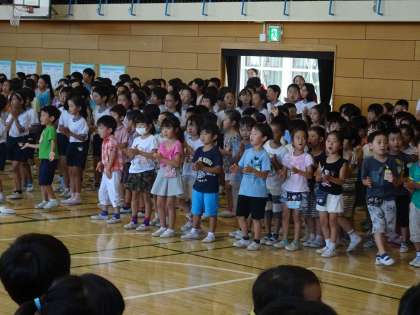 音楽朝会 公開日 2017/07/18 更新日 2017/07/18 その他の教育活動 「歩いていこう Movin'on」を歌いました。 リズムに合わせて手をたたき、体を揺らしながら歌いました。 前向きな歌詞とみんなの元気な歌声がとても合っていました。(7月13日)