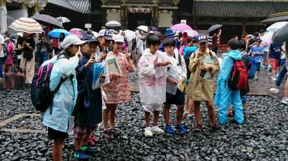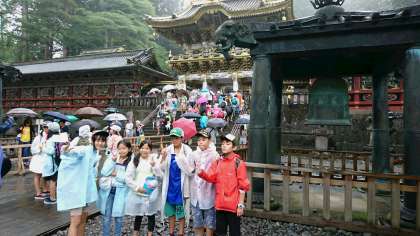 全員無事に宿舎に到着しました。日光東照宮では、霧雨の中の見学でしたが、みんな真剣に東照宮の問題に取り組んでいました。宿舎での開校式の後、避難訓練を行いました。いよいよ宿舎での生活がスタートしました。まずは、お土産購入とお風呂です。