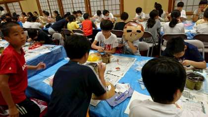 美味しい夕食をいただいた後、栃木県の伝統工芸のふくべ細工を作りました。それぞれ個性ある作品になりました。これから就寝の準備をします。