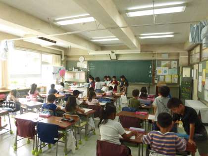 2学期スタート 公開日 2017/09/01 更新日 2017/09/01 その他の教育活動 本日9月1日より2学期が始まりました。子ども達が笑顔で登校し、学校にもまた活気が戻ってきました。 本日は4時間授業です。朝、始業式が行われ、その後は各学級で活動しています。夏休みの思い出を発表したり、係を決めたり、宿題を集めたり、早速漢字の学習を始めている学級もありました。子ども達はきちんと気持ちを切り替えて、先生の話をしっかりと聞いていました。