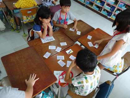 外国語活動(2年生) 公開日 2017/09/11 更新日 2017/09/11 2年生 2学期の外国語活動がありました。 色の言い方や、形の言い方を学習しました。 最後は、神経衰弱をしました。(9月8日)