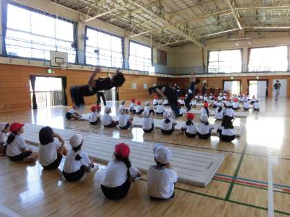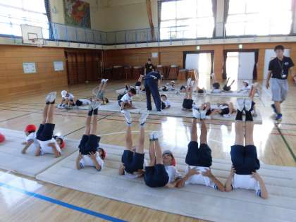 オリンピック・パラリンピック教育 公開日 2017/09/13 更新日 2017/09/13 1年生 駒沢大学生にマット運動を教わりました。 いろいろな動きに挑戦し、楽しみながら体を動かしました。 かっこいい技もたくさん見ることができ、喜んでいました。 1年