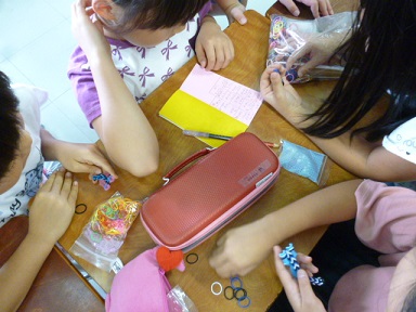 3組の子どもたちは、ブレスレットを作っています。