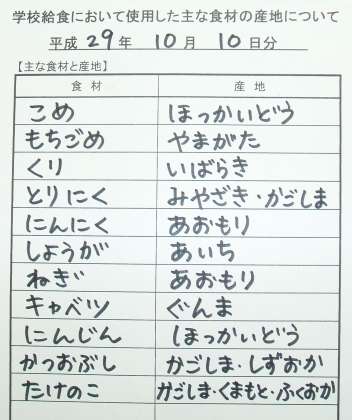 10月10日の給食 公開日 2017/10/11 更新日 2017/10/11 その他の教育活動 *栗ごはん *とりの照り焼き *野菜のおかか炒め *たけのこのそぼろ煮 *ぶどうジュース 今日はなかよしタイム「お弁当給食」でした。 給食室でひとつひとつ心を込めて手作りしたお弁当を持って、なかよし班のみんなと、校庭・屋上・体育館でいただきました。 いつもと違う仲間、いつもと違う場所!みんなとても楽しそうでした。