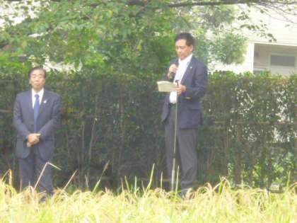 10月11日の3年生のようす その1 公開日 2017/10/11 更新日 2017/10/11 3年生 稲刈りをするために次大夫堀公園に行きました。たくさんの小学校や幼稚園、保育園の子どもたちとその保護者で、1000人以上が集まっていました。3年生の中には自分自身が幼稚園や保育園の時に稲刈りをした体験を話してくれる子どもたちもいました。 始めに、区長や農協の方のお話がありました。続いて、稲の刈り方の説明がありました。 子どもたちはしっかりと話を聞いたり拍手を送ったりしていました。 3年