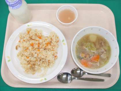 *ツナライス *ひよこ豆のいなか風スープ *りんごゼリー *牛乳
