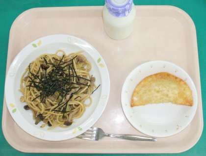 *和風スパゲティー *スイートポテトパイ *牛乳