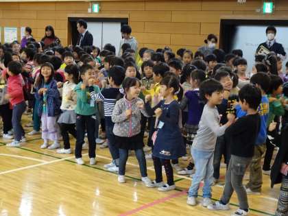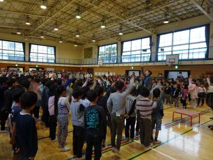 音楽朝会があり、学芸会の始めと終わりに歌う歌を練習しました。