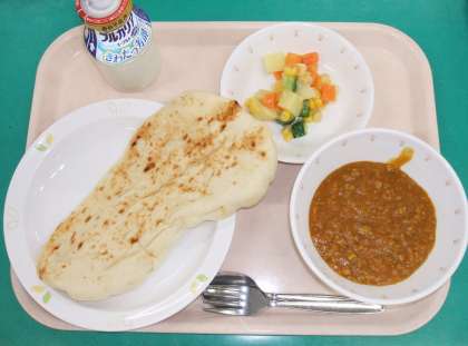 *ナン *キーマカレー *マセドアンサラダ *牛乳