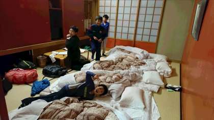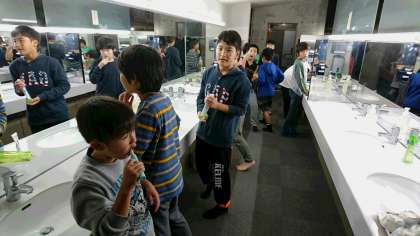 楽しい移動教室も最後の夜をむかえました。キャンプファイアで仲間たちとの絆を深めました。その後は、就寝の準備です。