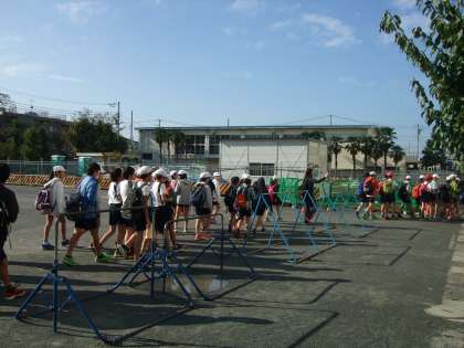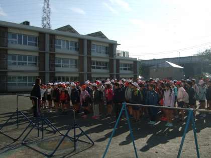 6年生が連合運動会のため、世田谷総合運動場に向けて出発しました。これまで出場する種目に合わせ毎日練習を重ねてきました。一人一人が自分の力を最大限に発揮できる場になればと思います。(10月26日 8時30分)