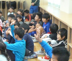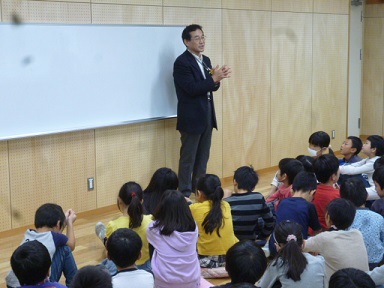 1時間目に3年生合同の総合的な学習の時間を行いました。喜多見まちづくりセンターの所長さんにゲストティチャーとしてお出でいただきました。子どもたちからの町づくりについての質問に答えていただきました。