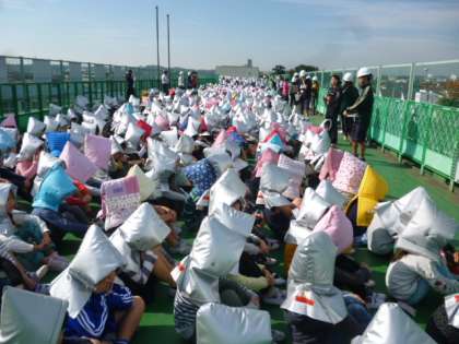 東日本震災以来、こうした津波の避難を行うようになりました。喜多見の校庭は、海抜15メートル、東京湾から21キロほどです。万が一のことを考え、毎年こうした訓練を行っています。
