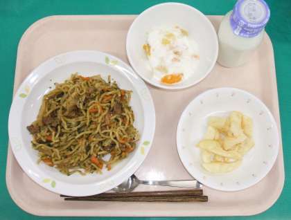 *ソース焼きそば *フライドポテト *フルーツヨーグルト *牛乳