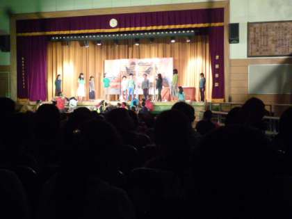 自分たちの出番に備えて、衣装を着けて1年生の劇に興味津々になっていました。1年生が終わり、自分たちの番になると緊張感が漂い始めました。リハーサル以上によい出来映えでした。土曜日の保護者鑑賞日をお楽しみに。