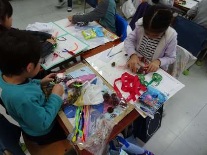 自分がもってきた材料や松ぼっくりを上手に付けて、クリスマスにぴったりな飾りを作ることが出来ました。
