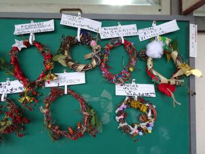 あさがおのつるでクリスマスリースを作りました。
