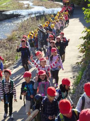 歩いている様子です。しっかり列になり歩いていました。(11月24日)