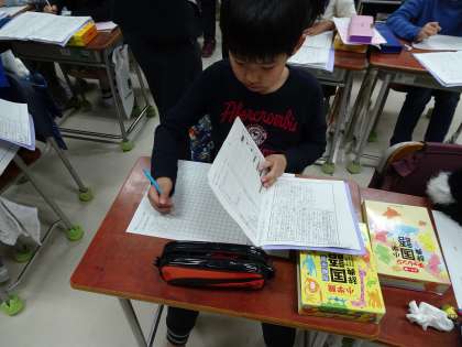 いろんな先生が参観していたので、3年2組のみんなも緊張した様子でしたが、文を書くところから、推敲まで一生懸命取り組んでいました。(11月27日)