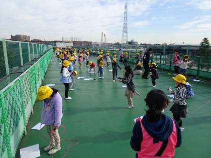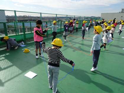 学年ごとに、屋上でなわとびの練習や検定をしています。