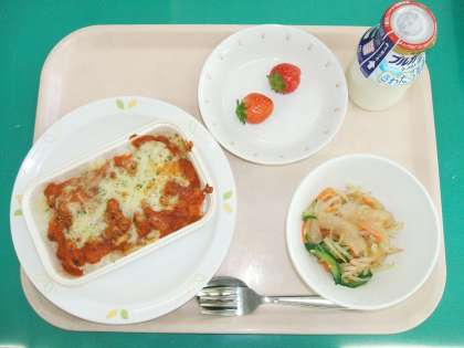 *トマトドリア *こんにゃくサラダ *くだもの(いちご) *牛乳