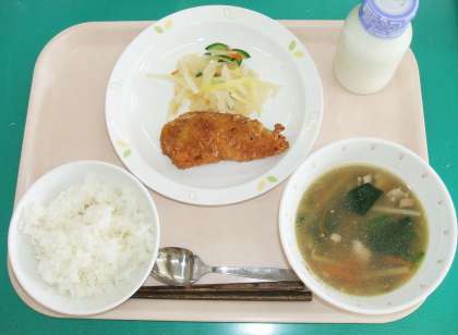 *ごはん *魚の七味揚げ *青パパイヤサラダ *バンブースープ *牛乳