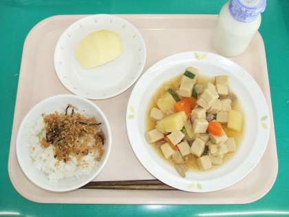 *ごはん *カミカミつくだ煮 *肉じゃがうま煮 *くだもの(りんご) *牛乳