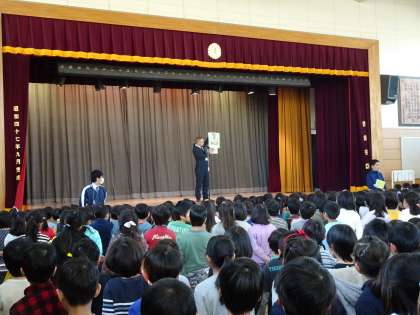 校長先生のお話は、季節のことや今話題になっていることなど、様々な話を子ども達にしています。