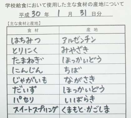 *ハニートースト *ビーンズシチュー *くだもの(スイートスプリング) *牛乳