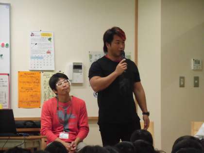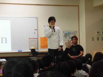 今回お越しいただいたのは、喜多見小学校の卒業生でもある、ヒルトン東京・パティシエの岩沢泰良さん、プロレスラーの三富政行さん、そして喜多見児童館職員の村松将典さんの3名の方々です。仕事内容、今の仕事に就いた理由や過程など、様々な話をしてくださいました。