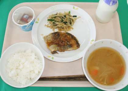 *ごはん *納豆 *アジの南蛮揚げ *もやしのごま風味 *みそ汁 *牛乳