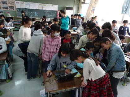 パソコンクラブでは、どんな作品を作っているのか興味津々。上級生からの優しい説明もあり、パソコンクラブが気になっている子もいたようです。