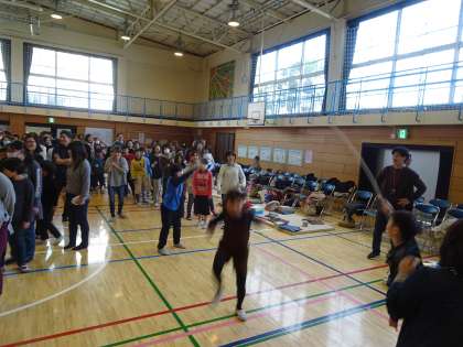 各クラスのできるようになっとことの発表では、跳び箱やマット運動、長縄やリズム縄跳び、ダンスなどそれぞれ工夫を凝らした発表が行われました。