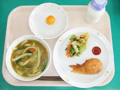 *カレーうどん *じゃがまるくん *野菜のおかか和え *きんかん *牛乳