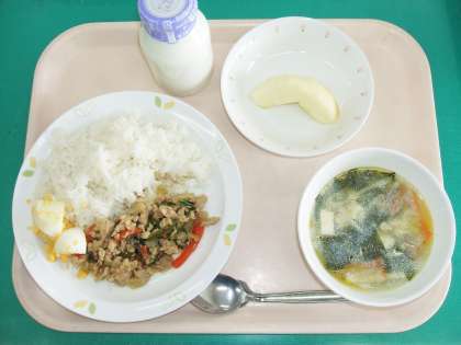 *ガパオライス *わかめスープ *くだもの(りんご) *牛乳