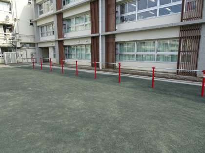 新しいポイント4 鉄棒 体育館側が青、新校舎側が赤になりました。