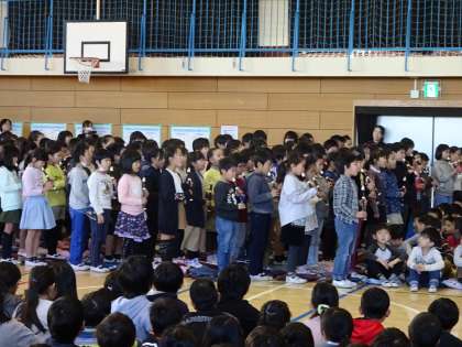 6年生を送る会(3年生) 公開日 2018/03/02 更新日 2018/03/02 3年生 3年生の演目は、言葉と演奏・歌でした。 今年度から習い始めたリコーダーにのせて、歌いました。 リコーダーの音色が揃っていて、きれいな演奏でした(3月2日)